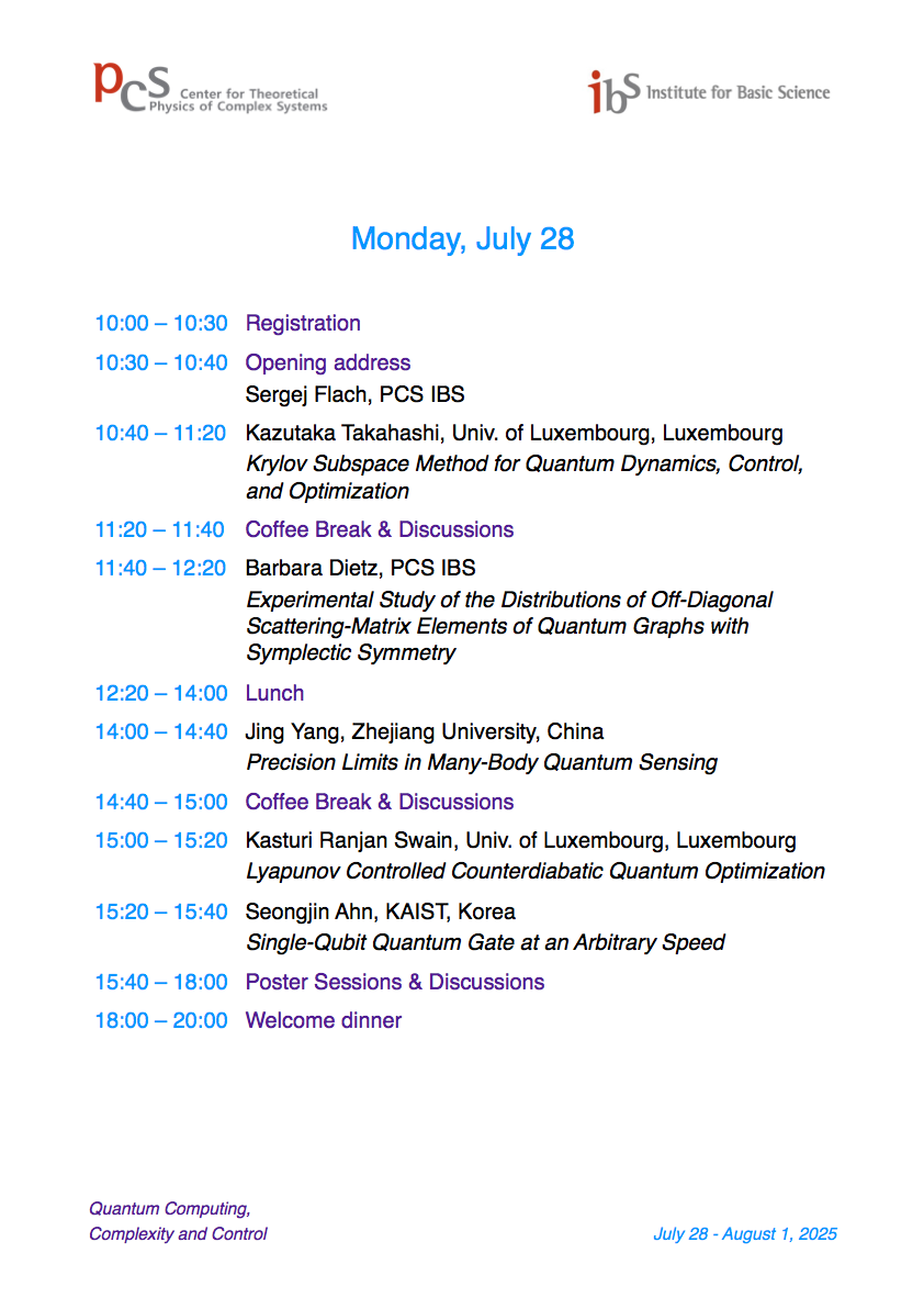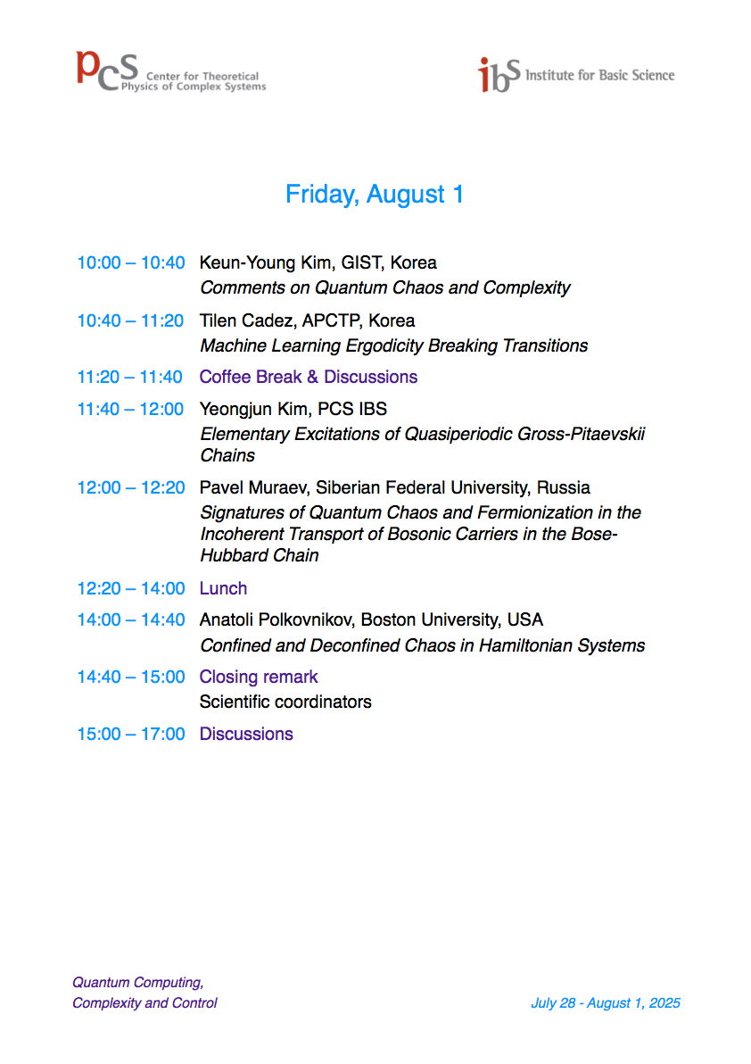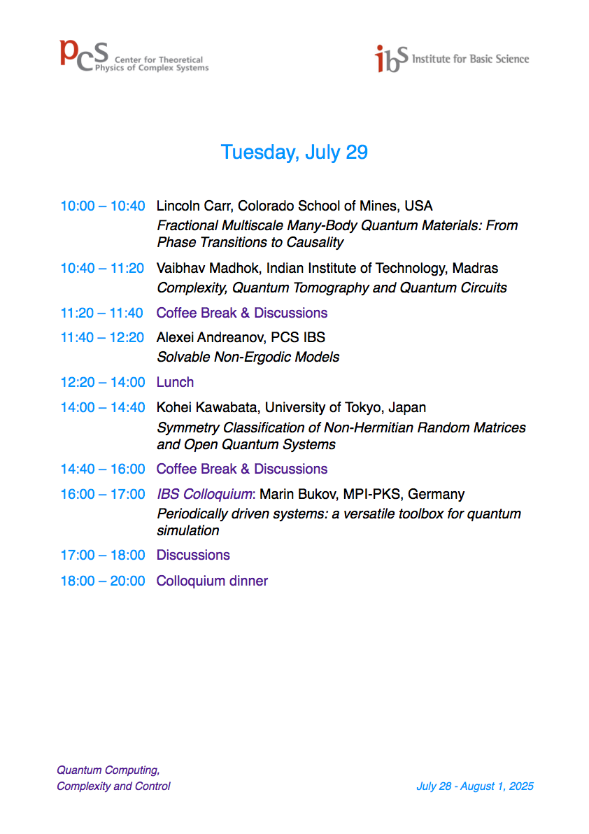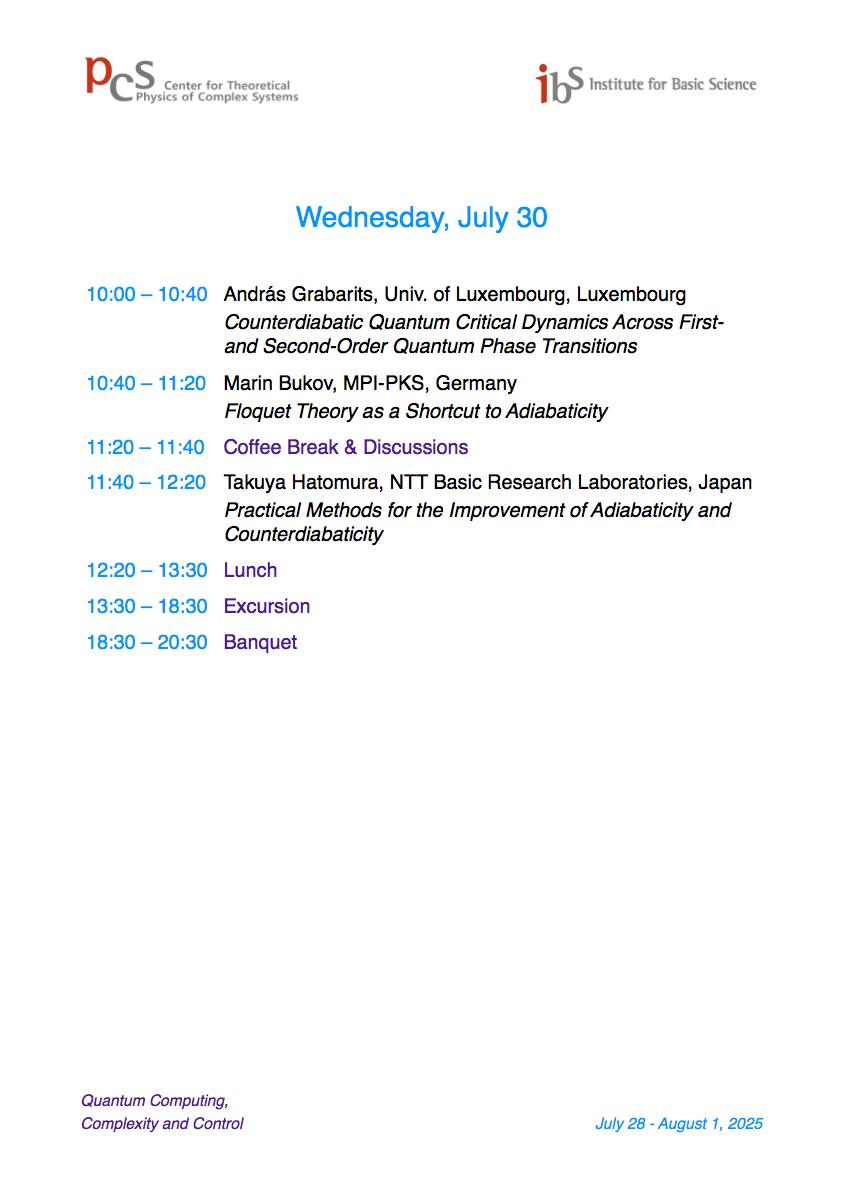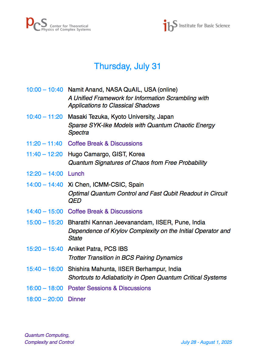 International Workshop Quantum Computing, Complexity, and Control (QCCC25)